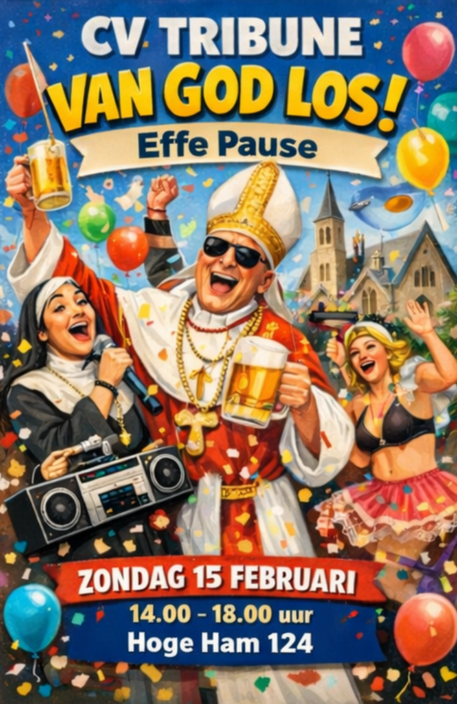 Dus: kom tot bezinning, raak van God los en neem vooral een effe pause bij CV Tribune.